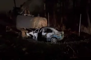 Под Рыбинском автомобиль врезался в экскаватор и они загорелись