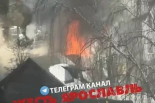 В Ярославле на проспекте Авиаторов горит деревянный частный дом