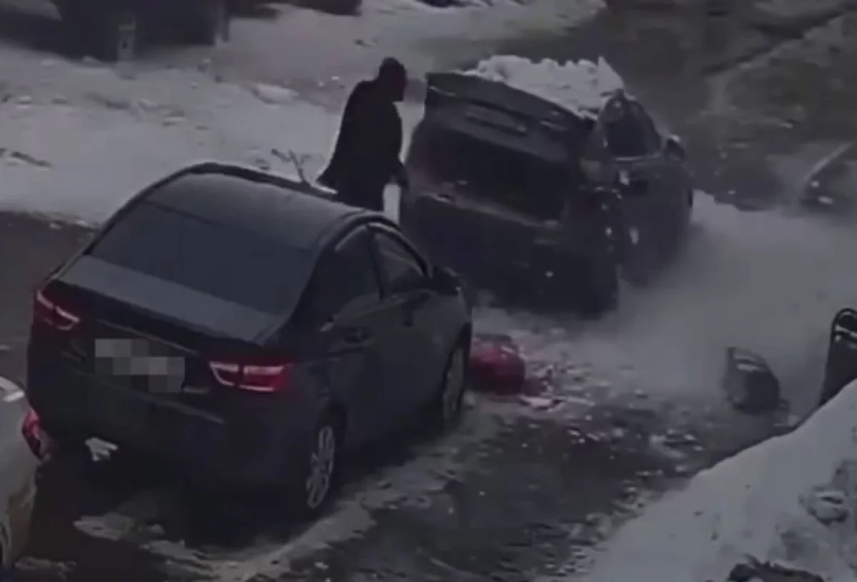 Вместе с обращением — видео, на котором предстаёт по-настоящему пугающая картина. Видно, что мужчина загружает сумки в багажник своего автомобиля, как вдруг с крыши многоэтажного дома падает гигантская снежная глыба. Авто заваливает практически полностью.