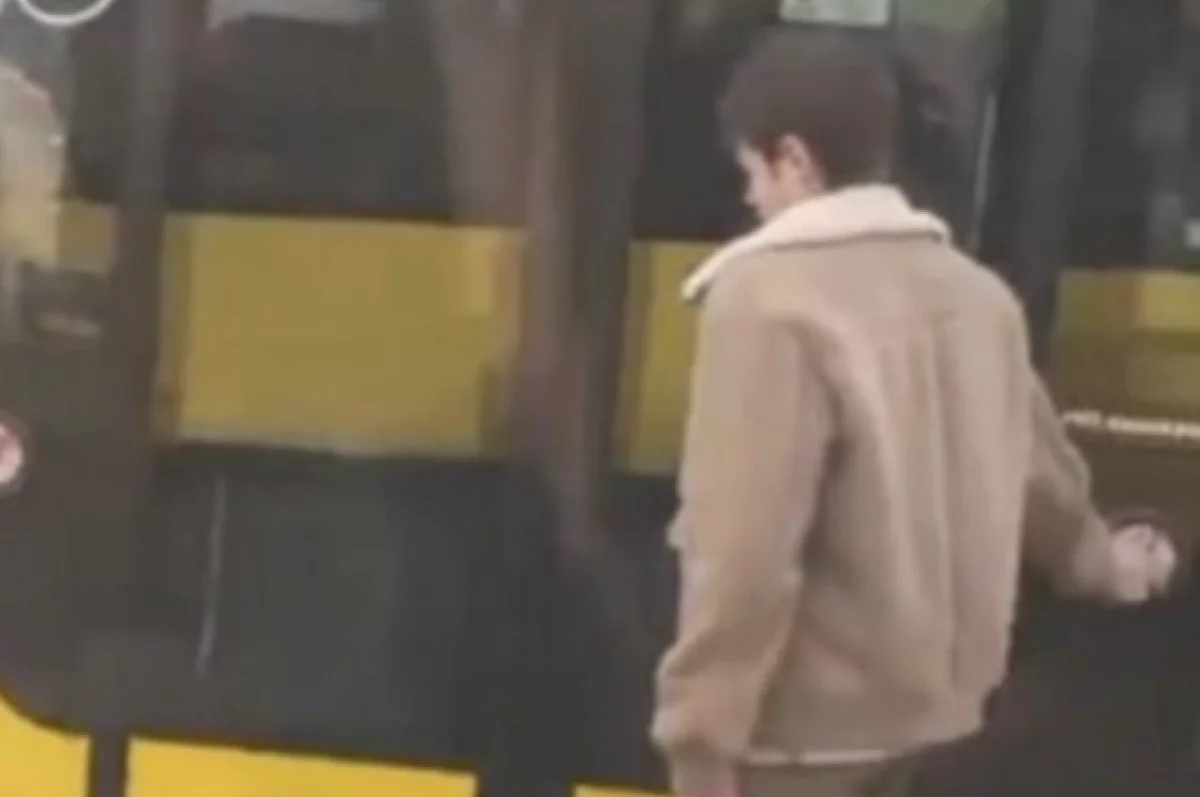 Очевидцы утверждают, что автобус не остановился на остановке, поэтому пассажир решил самостоятельно попасть внутрь.