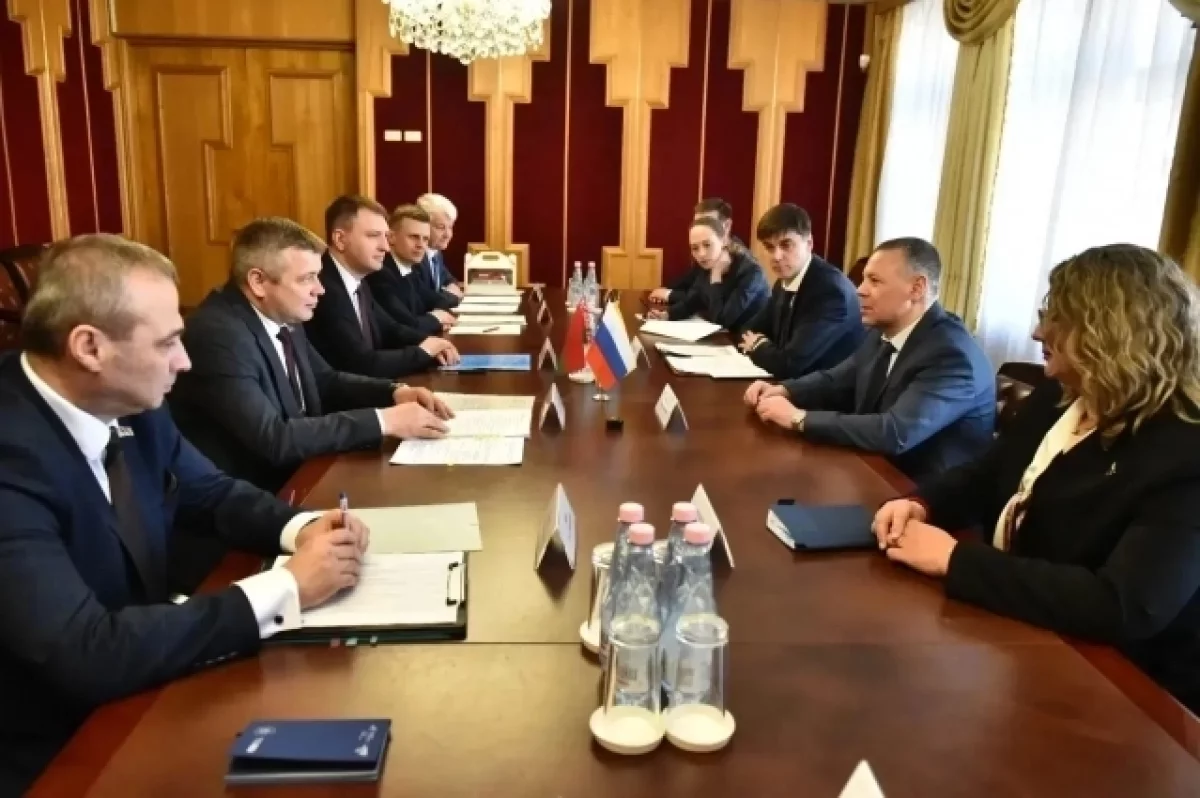 Губернатор Михаил Евраев встретился с министром промышленности Беларуси Андреем Кузнецовым. В регион приехала большая делегация для обсуждения общих планов.