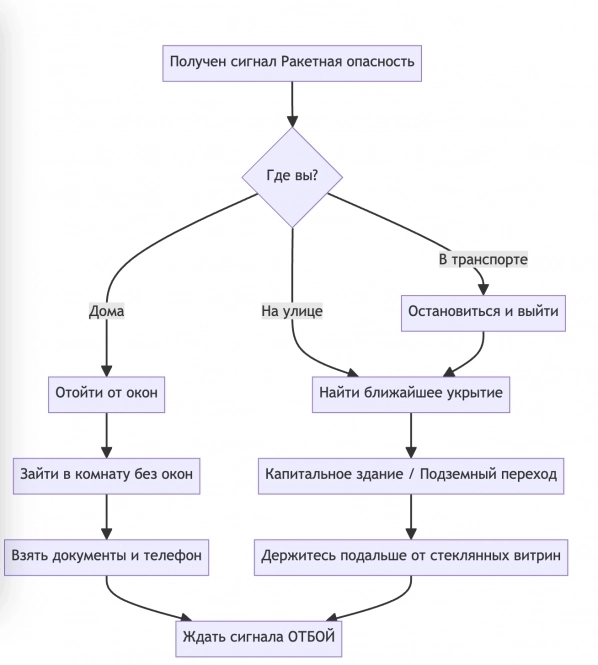 Будьте осторожны и сохраняйте спокойствие. Не покидайте укрытий до официального оповещения об отмене режима.