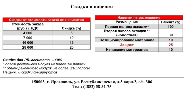 Прайс-лист на размещение рекламных материалов в газете «Аргументы и факты – Ярославль»: Фото: АиФ Фото: АиФ Прайс-лист на размещение рекламных материалов на сайте yar.aif.ru: Фото: АиФ