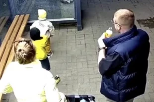 Малыш бросил камень в стекло остановки, а семья поспешно покинула место происшествия.